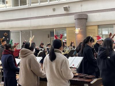吹奏楽部の部員たちも、サンタやトナカイになりきって演奏をしてくれました。