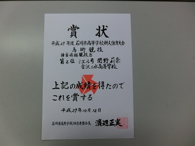 まず、9月19日には石川県高等学校新人体育大会の登山大会で女子が優勝。
