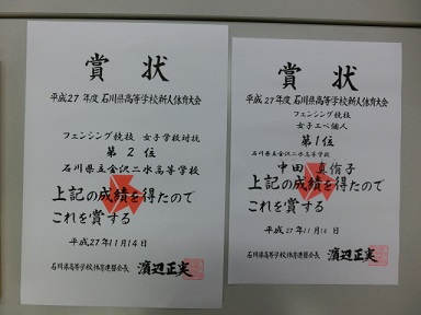 また、20日には石川県高等学校文化連盟英語部の英語スピーチコンテストで、平山立夏子さんが優勝、庭田陽菜子さんが第3位の栄誉に輝きました。