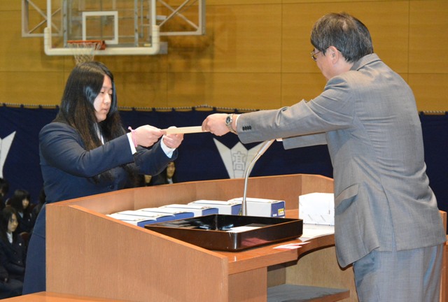3月3日(木)午前10時より、本校第68回卒業証書授与式が挙行されました。多くのご来賓、保護者の皆様、在校生及び教職員に見送られ、男子164名、女子230名、計394名が慣れ親しんだ本校を巣立っていきました。