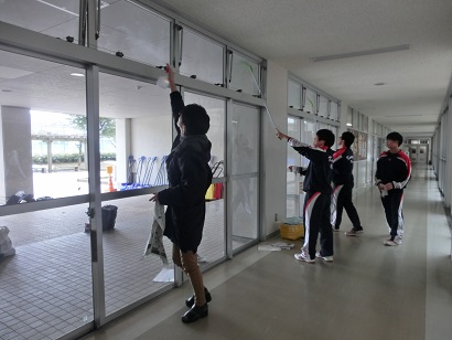 卒業式を明日に控え、窓をピカピカにして卒業生を送りだそう!