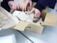 荷物を開ける部員