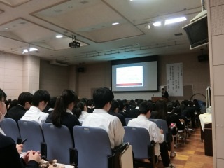 11月3日午後、1年生を対象に「からたち塾」を開催しました。毎年、本校の同窓生から仕事・人生などの経験を語っていただき、一人ひとりが自分の将来設計を考える一助とする目的で開催されています。本年度は第29期の卒業生の花岡央至氏、川並利治氏から貴重なお話を拝聴しました。