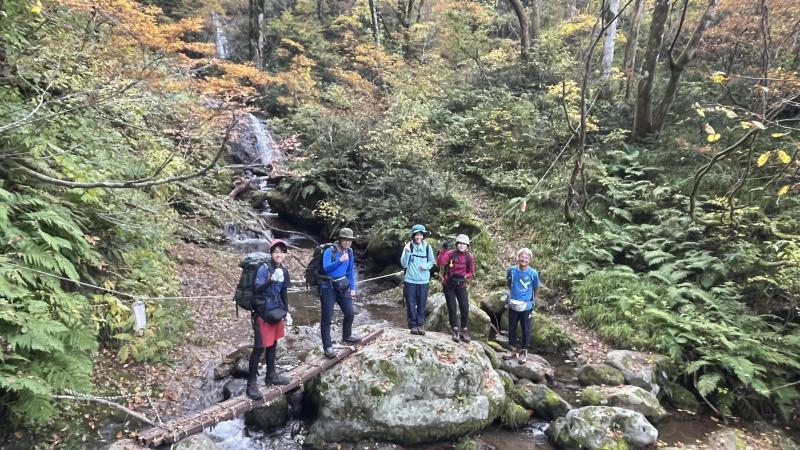 登山道は落ち葉や腐葉土が重なり、柔らかく歩きやすい道でした。今回は顧問1名の他に、本校の外部指導員も同行しての登山ということもあり、道中では様々な植物の解説や、歩行技術の指導を行いながらのんびりと進んでいきました。色鮮やかな紅葉の中、秋を感じながらの登山となりました。