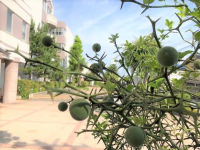 *左はNsui Butterfly、右は本校のからたち、今は青い実がついています。