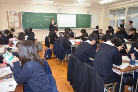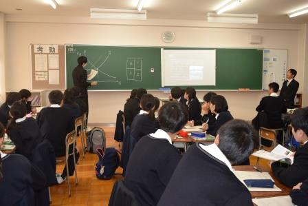 1年現代社会の授業で、担当は澤田先生。テーマは「需給曲線の移動」でした。