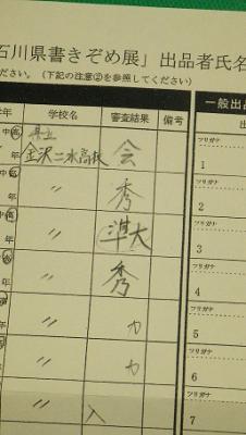 ※「準大」は準大賞 「会」は石川書研会長賞 「秀」は秀作 「カ」は佳作 「入」は入選
