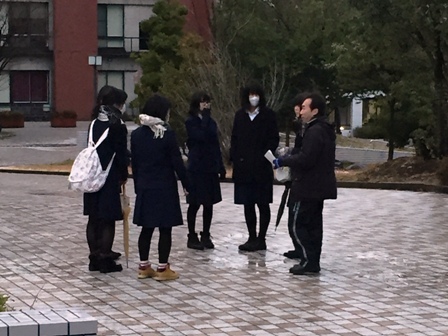 (放課後の雪かきの様子 陸上部がトレーニングとボランティアを兼ねて一石二鳥)