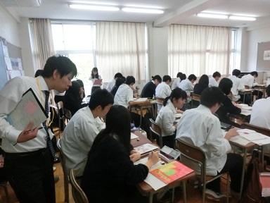 新学期が始まり、2週間。すっかり涼しくなりました。昼休みの進路指導室前の廊下は、面談する担任と3年生がずらりと並び、意欲と熱気が感じられます。いよいよシーズン到来です。
