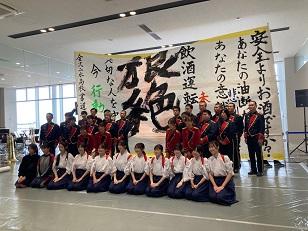 【書道部】「飲酒運転根絶の日」出発式で書道パフォーマンス!