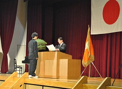 皆さんは、本校における学業を通じて、三年間を見通してこつこつと努力することの大切さを学んだはずです。この姿勢は人生を生き抜く根本姿勢ともなります。いくつになっても目標に向かって、向上心を持ちこつこつと努力する日々の姿勢で、人生を貫いてください。自分で自分を誉めてやることのできる生き様を、見せて欲しいと心から期待しております。