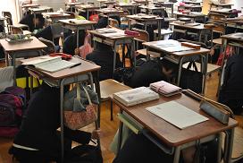 6月3日(月)7限目の時間に、3年生全員を対象に進路講話を実施しました。主な内容は今週末の6月8日(土)・9日(日)に受験する進研マーク模試の概要、受験上の諸注意などで、過去の先輩たちの成功例、失敗例を交えながら進路指導課長から丁寧な説明を行いました。初めてのマーク模試ということもあって、3年生は真剣かつ熱心に耳を傾けていました。