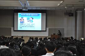 6月5日(水)、1年生を対象として進路講話を実施しました。ベネッセコーポレション北陸支社の富田泰成氏を迎えて「進路実現に向けて」というテーマで、文理選択の留意点や、学習に対する心構えなどを聞きました。