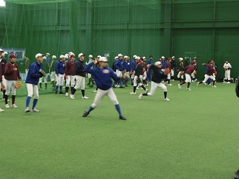 正月休み明けには、体慣らしの意味も含めて、簡単なゲーム形式の練習を取り入れました。終始楽しい雰囲気であり、遊び感覚ではありましたが、日頃先生方から指導されていることを選手同士で確認し合っており、野球部員としての意識の高さがうかがえました。