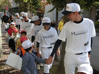 11月7日(木)に、本校野球部と近所のこども園との交流会を実施しました。