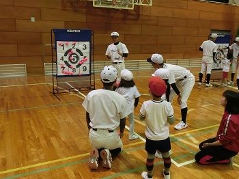 中学生対象の野球教室に、他の高校の選手とともに補助員として参加しました。