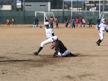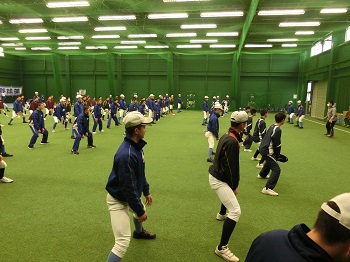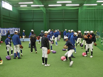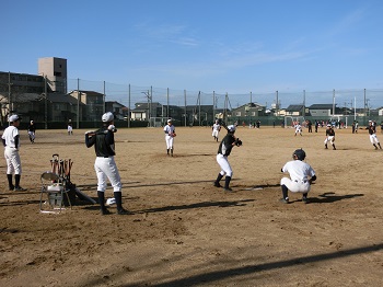 正月休み明けには、体慣らしの意味も含めて、簡単なゲーム形式の練習を取り入れました。終始楽しい雰囲気であり、遊び感覚ではありましたが、日頃先生方から指導されていることを選手同士で確認し合っており、野球部員としての意識の高さがうかがえました。