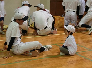 11月7日(木)に、本校野球部と近所のこども園との交流会を実施しました。