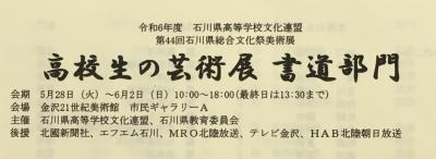 現在、開催中の「第44回石川県高等学校総合文化祭(総文) 書道部門」で