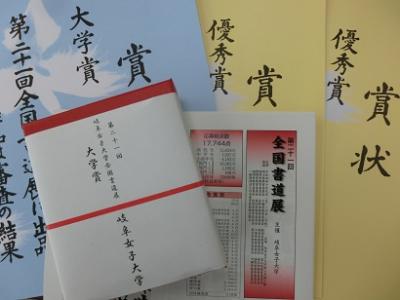 ※大学賞には書道部員の他に、本校生徒2名入賞。奨励賞にも本校生徒6名が入賞しました。
