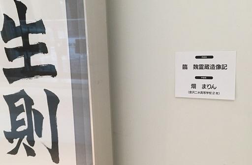 生徒作品(「高校生の書道展 最優秀賞受賞作」)が展示。
