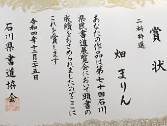 石川県民書道展覧会(創立70周年記念)に応募しました。