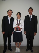 先週の「日本一」の大ニュースの余韻さめやらぬ本日午後、インターハイ陸上女子200m優勝の神保祐希選手と木村哲也監督、下根浩明副校長の3人が石川県教育委員会を訪れ、木下公司教育長を表敬訪問しました。