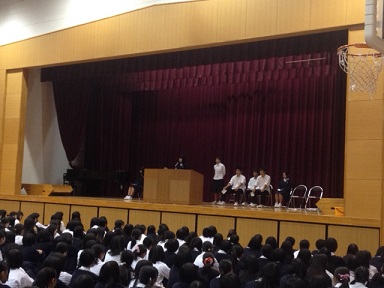 後期生徒会役員選挙 投稿日時 : 2015/09/17 nisui 昨日、後期生徒会役員選挙が行われました。5人の候補者と応援者が全校生徒の前で演説し、投票の結果、全員信任されました。後期は「二水ライブ」「球技大会」「オレンジコンサート」と楽しみな行事が続きます。新任された2年生3人、1年生2人の役員の皆さんには、より活気あふれる二水を作るため、大いにチャレンジしてほしいと思います。(立ち会い演説会)