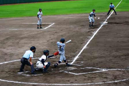 3回表(二水) 相手の連続内野エラーと死球で一死満塁のチャンスから左前安打で1点追加、6対1とリードを広げる。