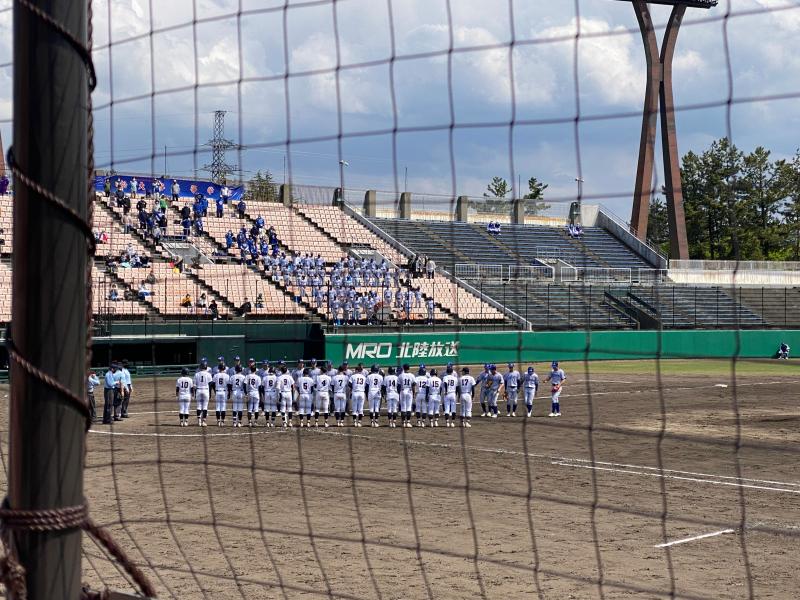 5月2日(月)県立野球場で第146回北信越地区高等学校石川県大会準々決勝が行われました。対戦相手は小松大谷高校と私学の強豪校にどれだけ戦えるか試される試合でした。序盤から小松大谷の強力打線に二水投手がつかまり、大量失点を許してしまう展開となり、徹底された走塁や細かいプレーの質の高さに終始二水の流れが作れず5回コールド負けと悔しさの残る敗戦となりました。