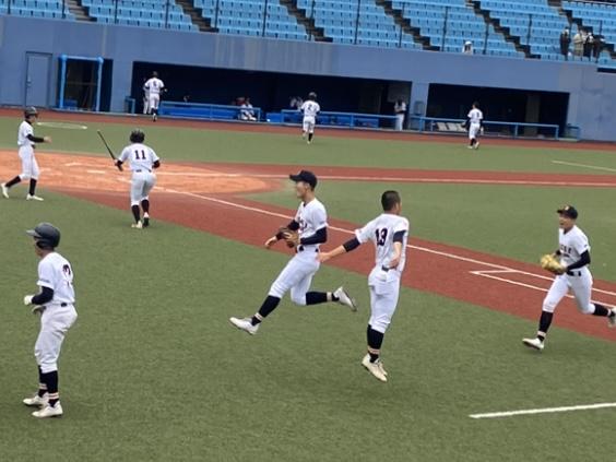 ・3点差がついた8回の攻撃では、先頭打者がチャンスを作り、後続4番打者が右中間を破る3塁打で1点を返した。その後も0死3塁、犠牲フライで追加点をあげ、1点差まで追い詰めるも、8回裏に再び長打と単打で2点差となった。(二4ー6飯)2点を追う最終回、何としても出塁したい場面だったが、力及ばず3者凡退で試合終了となった。