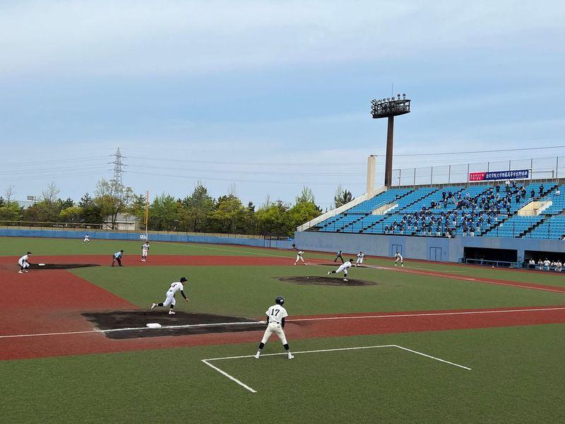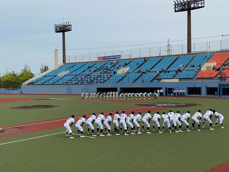 4月24日(日)市民球場9:00~第146回北信越地区高等学校石川県大会第2回戦が行われました。対戦相手は金沢学院大付属高校でした。私立の実力校を相手に、どれだけ強い気持ちを持って挑めるかが試される試合となりました。不安と期待が入り混じる中ではありましたが、ウォーミングアップから笑顔と活気が溢れる雰囲気で気持ちを高め合い、良い緊張感を保ちながら試合に入ることができました。