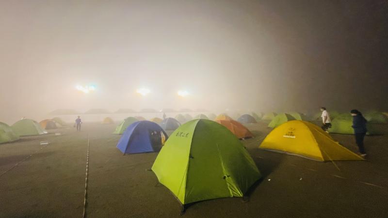 あいにくの荒天。登り始めは良かったのですが、天気の回復の見込みがないことからコースが短縮されました。また、雨によって幕営地のテントの一部が水没していたことから急遽、体育館泊に変更になりました。