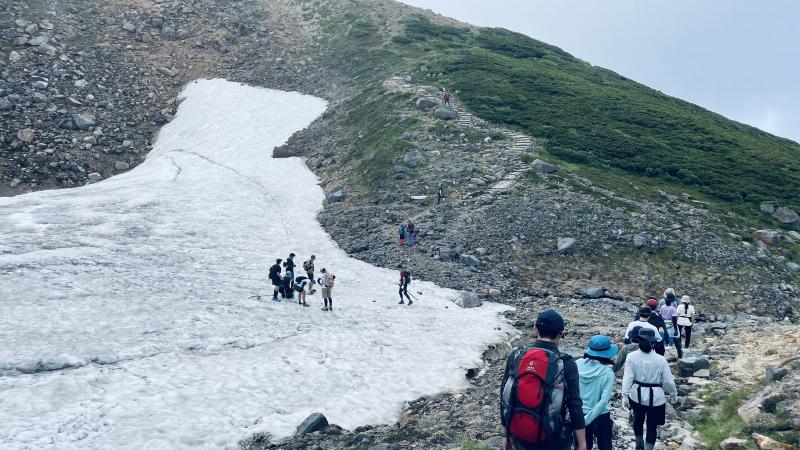 室堂で合流した後、全員で山頂まで行き、その後にお池めぐりをしました。池の名称の由来や高山植物について、外部顧問の勝見先生からレクチャーがあり、生徒は「なるほど」と言いながら聞き入っていました。