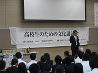 5月24日(木)の3限、4限目に作家高野秀行氏による講演会が行われました。演題は「オンリーワンになる方法」で学生時代、探検部に所属し、アフリカの奥地を探検した話や、3年前にサハラ砂漠でマラソン大会に出場した話などがなされました。普通の人がなかなか見ることができないような映像を交えた約70分のお話を1年生は熱心に聞いていました。