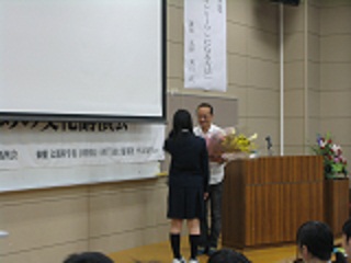 また、生徒代表による花束贈呈の後、集英社から集英社文庫図書特選100冊が贈呈されました。ありがとうございました。