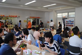 7月20日(土)、21日(日)に行われた二水祭で、今年も本校PTAのみなさんによる「おっかさん」企画を食堂「パル」で行いました。PTA役員・理事の約50名のみなさんが前日の金曜日から道具・機材の準備をし、当日は2日間ともお揃いのTシャツで朝早くからおいしい「めった汁」を提供してくださいました。