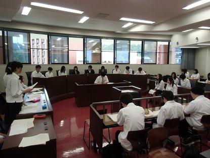 6月21日に、204H(人文科学コース)の生徒は、模擬裁判選手権に向けての実習(架空の事件を扱う刑事裁判)を金沢大学法科大学院の模擬法廷にて行いました。