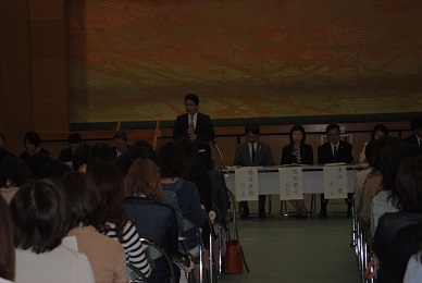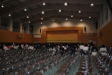 5月9日(土)、公開授業とPTA総会の後、15時20分から、講堂において3年生の保護者を対象とする進路説明会を開催しました。