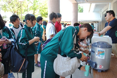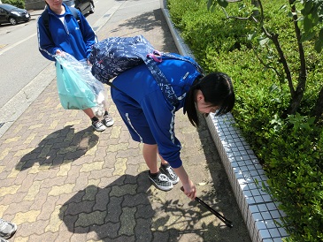 爽やかに晴れわたった青空の下、午後2時頃から、日焼けした生徒達は、元気にゴミの入った袋を手に次々学校に帰ってきました。