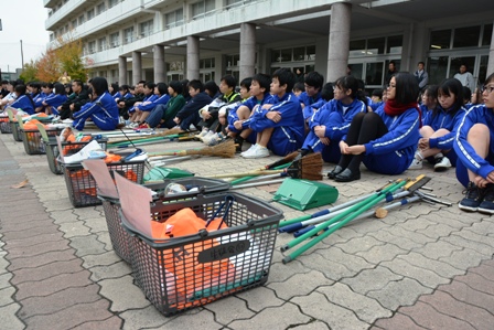 11月21日、土曜補習を終えた午後、清掃ボランティア活動「二水LIVE」を実施しました。部活動に所属している1・2年生321人が本校周辺で清掃活動に汗を流しました。