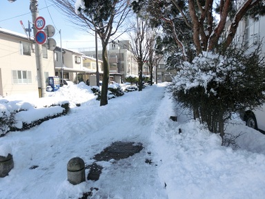 日本列島をおそった今季一番の寒気の影響で、今朝は登校できない生徒、遅刻する生徒が続出しました。本日の除雪当番の110Hの皆さんのおかげで歩道も確保されました。昼は青空が広がり、今朝の悪夢が嘘のようです。