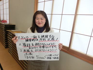 二水ホールからは、箏(こと)の音色が。二水ホール2階の和室で、1年生が箏の実習に取り組んでいたのです。先生の講義を聞いて練習の後、「てんてまり」の合奏。息もぴったり合ってなかなか上手な演奏でした。