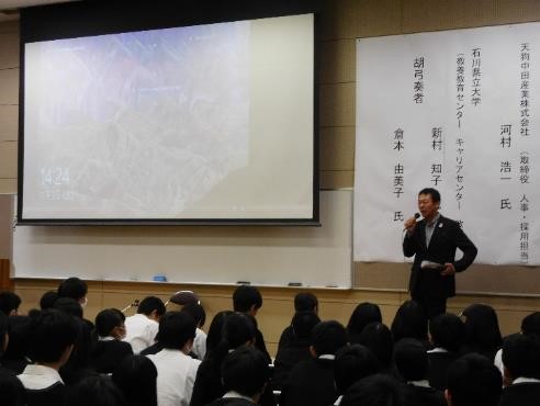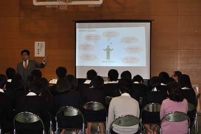 11月3日(金)に学校公開の一環として1年生を対象に「からたち塾」が開催されました。第28期卒業生3名の先輩から貴重なお話を拝聴しました。講師の方々の学生時代から現在のご職業に至るまで、思い描いていた通りにいかなかったことなどもお話いただき、有意義な時間となりました。