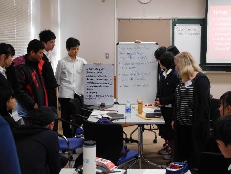 11月8日(水)に本校会議室にてグローバルゼミを開校しました。金沢大学の留学生13名を迎えて、授業見学や校舎案内を通して日本の学校を知ってもらうと同時に、生徒たちはこれまで取り組んできた課題探求活動を発表し、意見交換を通して研究を深めることができました。