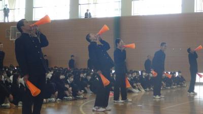 とても力強い応援を見せてくれました。最後には応援の気持ちを込めて全校生徒で校歌を歌いました。