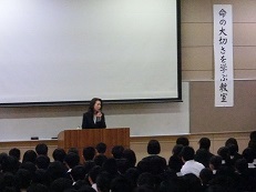 5月8日に、少年犯罪被害当事者の会より一井彩子様をお招きし、「命の大切さを学ぶ教室」と題して1年生を対象に講演会を行いました。