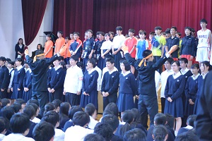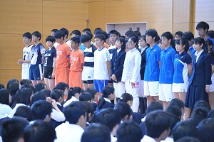 その後、応援団からのエール、生徒会長、副校長からの激励の言葉が選手に送られ、会場は大きな盛り上がりを見せました。
