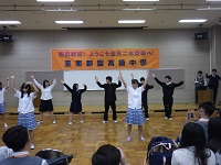 続いて、本校の生徒はバイオリンの演奏と合唱を、新豊高級中学の生徒はダンスパフォーマンスとウクレレ演奏を披露しました。ダンスでは本校生徒も加わり、息の合ったダンスで盛り上がりました。