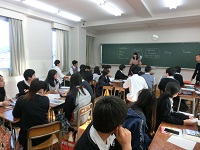 本校生徒の案内で校舎を見学した後、第6限は英語の授業に参加、第7限は書道と茶道の活動に参加しました。